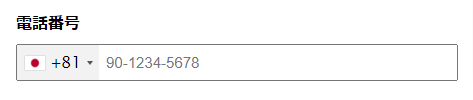 このフィールドは国旗の表示と+81等の国際電話国番号が必須のため、国内番号は03であれば3から始まり、090であれば90で始まります。