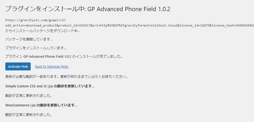 インストールが完了すると「Activate Perk」ボタンが有効化されますので、これをクリックします。