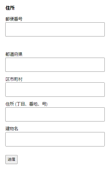 なお、郵便番号の右側にスペース(<span class="ginput_right ginput_address_zip_space"> </span>)を追加して都道府県を次の行の先頭から始まるようにしています。