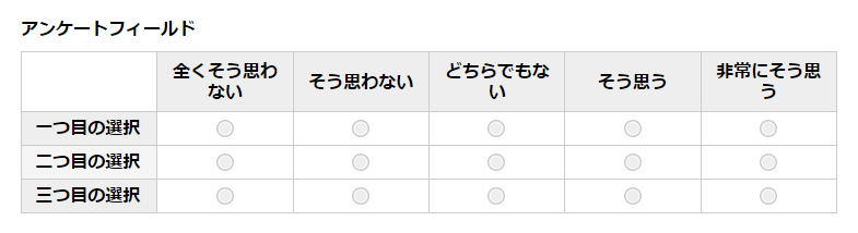 アンケートフィールドの表示例
