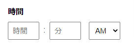 時間フィールドでは、ユーザーが時間を時間および分単位で送信することができ、入力された情報が正しくフォーマットされているかどうか自動的に検証されます。