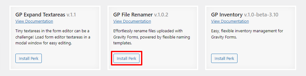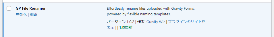 Gravity Forms File Renamer のインストールと有効化