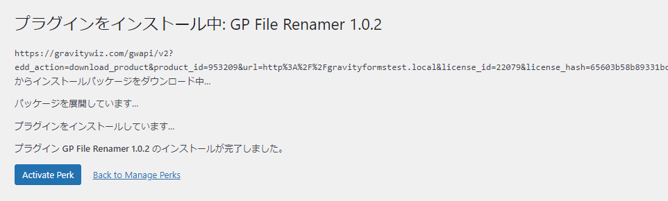 インストールが完了したら「Activate Perk」ボタンでプラグインの有効化を行います。