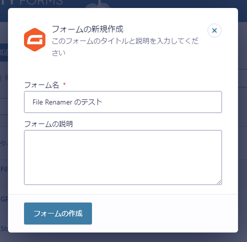 フォームの新規作成ダイアログが開きますので、適当な名前をつけて「フォームの作成」ボタンをクリックして保存します。